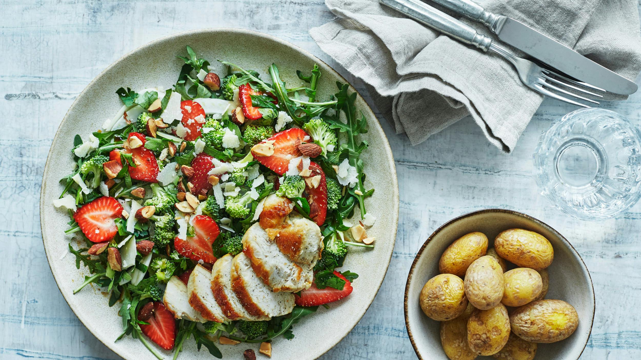 Nem hverdagsmad: Stegt kyllingebryst med jordbærsalat