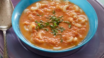 På familiejorunal.dk elsker vi suppe og denne tomatsuppe er ingen undtagelse. Prøv denne nemme tomatsuppe eller en af de 25 andre suppeopskrifter i galleriet under opskriften.