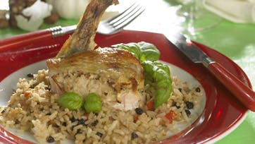 Kom korender i en skål og hæld vand ved, så det dækker. Lad det stå 1-2 timer og hæld evt. overskydende vand fra. Svits risene i en tykbundet gryde i olien. Hæld bouillon ved og kog risene under låg på 12 min. og lad dem hvile 12 min.