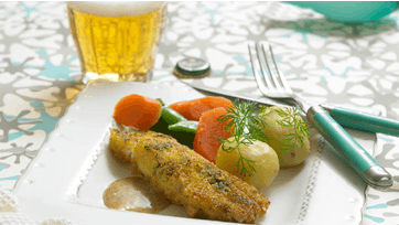 Dup fisken tør med køkkenrulle, vend den i lidt majsmel og steg den hurtigt på panden i smør.