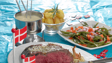 Oksesteg med skalotteløg, bearnaise og marinerede bønner