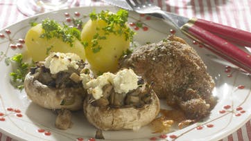Persillestegt kylling med gratineret champignon
