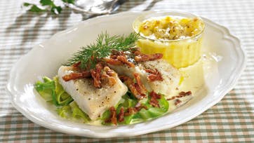 Pocheret torsk med flødekål