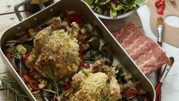 Sådan laver du poussiner med sennepspanering og ratatouille