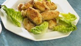 Pil og hak skalotteløg, hvidløg og chili fint. Bland det hakkede og osten med de kogte ris. Smag til med salt og koriander. Form aflange boller med fugtige hænder, så risene ikke klæber til håndfladerne. Vend bollerne i kartoffel- eller hvedemel. Tryk dem lidt flade i melet og steg dem i olie ved middelvarme, til de er sprøde og gennemvarme, 4-5 min.