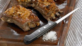 2 lammebryststykker uden skind og fedtkant, men med ben