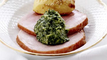 Server skinken med grønlangkålen, sennep og evt. kartofler.