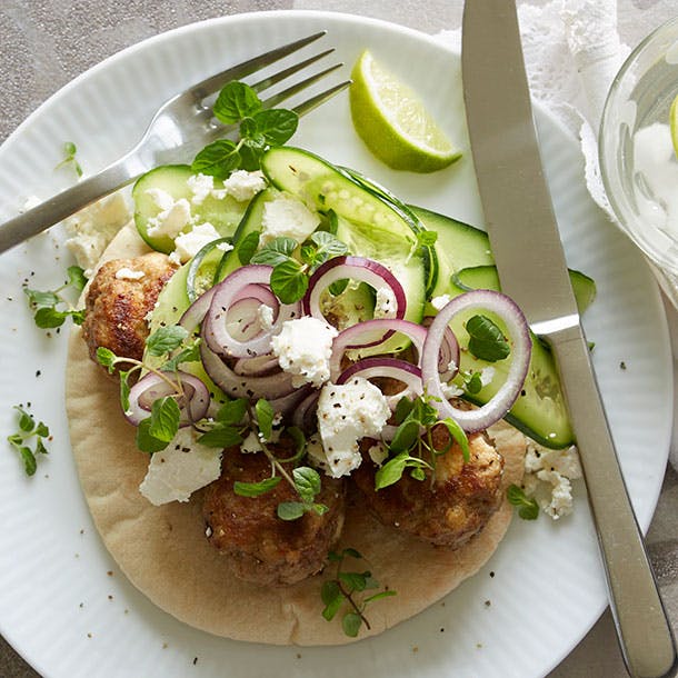 Krydrede frikadeller med urtekartofler og fennikelsalat