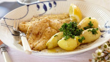 Søtunge med nye kartofler og smørsovs