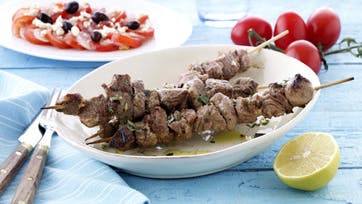 Skær kødet i 1½ x 1½ cm tern. Rør marinaden sammen, vend kødstykkerne heri og lad det marinere i 4 timer koldt. Sæt dem på spid og steg dem over grill ca. 12 min. Vendes jævnligt.