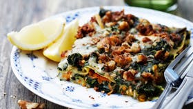Spinatlasagne med gulerod og valnødder