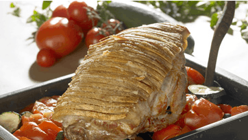 Sprød nakkesteg med efterårsgrønsager