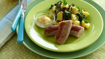 Fremgangsmåde til stegt medister med varme sennepskartofler