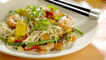 Stegte nudler med tigerrejer