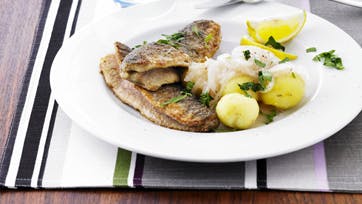 Begynd med sovsen. Løgene i ringe steges blidt i smør. Mel tilsættes, og der spædes med suppe. Koges igennem og smages til med eddike, salt, sukker og peber. Kog så kartoflerne i 20 min. Skyl og dup sildefileterne og vend dem i rugmel. Varm begge slags fedtstof på pande, og når det er klar, steges sildefileterne i 3 min. på hver side ved middelstærk varme.