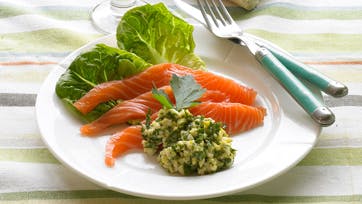 Snit krydderurterne fint. Hak æggene og bland dem med krydderurter og ravigottesauce. Rør olie og citronsaft i og smag til med salt og peber. Letsaltet laks kan holde sig en lille uges tid i køleskab.