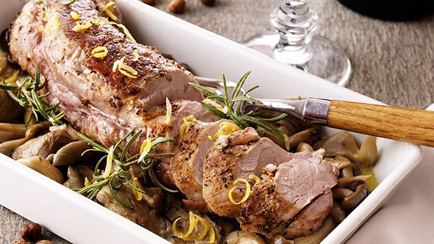 Sådan laver du svinemørbrad i ovn med flødestuvede svampe