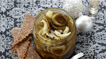 Udvand sildefileterne natten over og kog eddiken op med sukker, peber, dild og laurbærblade, til sukkeret er opløst. Tag lagen af varmen, kom løget i og lad den afkøle. Gnid fileterne med karry og rul dem sammen. Kom silderullerne i en egnet beholder, hæld lagen over og lad dem trække på køl i mindst 24 timer. Server sildene med rugbrød og rødløg.