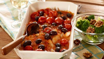 Torsk med tomater og oliven