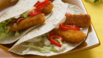 Steg fisken efter anvisningen på pakken. Læg dem i tortillaerne sammen med salsa, iceberg og creme fraiche.