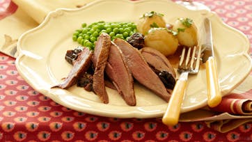 Fremgangsmåde til vildand med portvinssvesker og julesalat