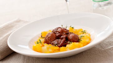 Vildtgryde med grov mos af butternut-squash og kartofler